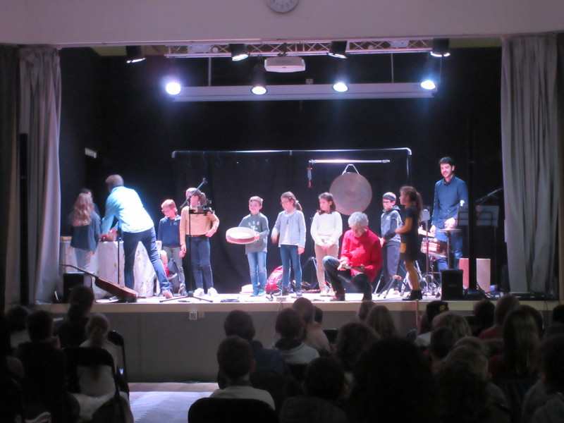 Selon les possibilités horaires, des représentants de chaque niveau de classes seront invités à participer au Tour du monde des instruments (idiophones) utilisés durant le spectacle.