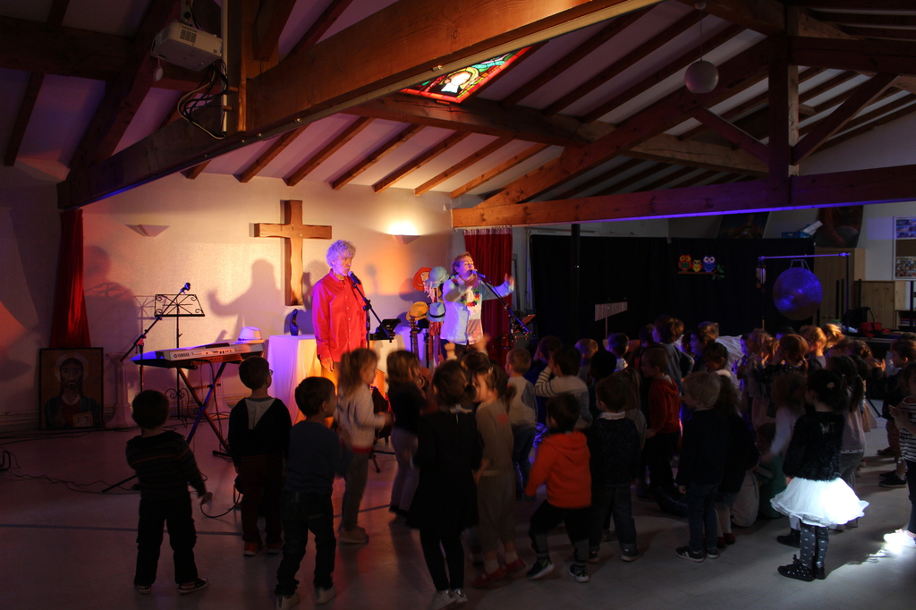 je propose des spectacles adaptés aux classes de la maternelle ou du primaire avec module pastoral. Composé de chansons, contes, histoires ou anecdotes suivant les âges, ces spectacles sont ludiques, pédagogiques, poétiques, catéchétiques et dansants, soupoudrés d'humour et surtout participatifs. Les enfants y sont invités à chanter, à danser et à gestuer. Les thèmes abordés sont divers :