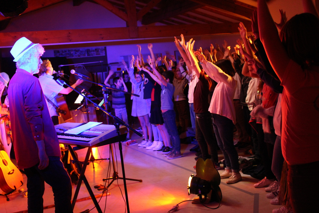 je tourne souvent avec un musicien mais parfois deux ou plus sur toute la France et les pays francophones depuis plus de 20 ans pour de petits ou grands groupes dans les écoles, paroisses ou les rassemblements.