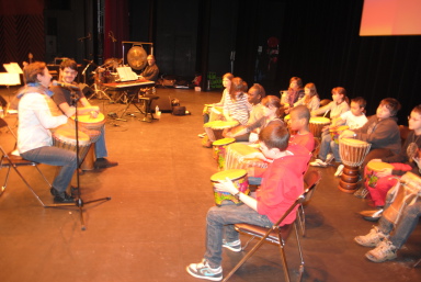 Possibilité d'ateliers de percussions rythmiques, de percussions sonores (idiophones) et de chants.