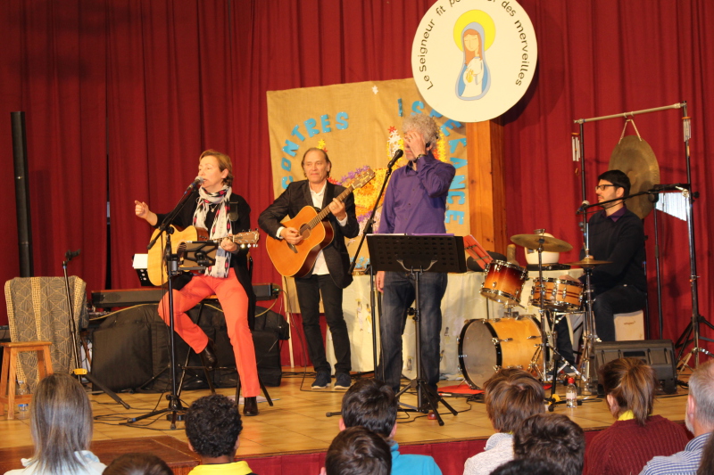 A travers une heure trente de chants, de sketches et de témoignages , les chanteurs-musiciens et comédiens ouvrent la porte du quotidien et vont entraîner le public peu à peu sur les chemins de l'Espérance, de la Fraternité et de la Bonne Nouvelle.